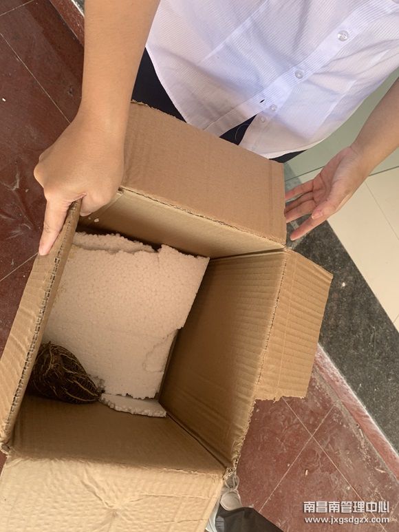 小鸟一直在路上扑腾,看着很吃力,大家快速地交完票款,前去检查小鸟的“伤势”,发现小鸟身上并无外伤。结合小鸟状态,员工猜测应该是飞翔的时候撞到了玻璃窗,于是连忙找来纸箱将小鸟保护起来,避免其受到其他伤害,并贴心地准备了水和食物。