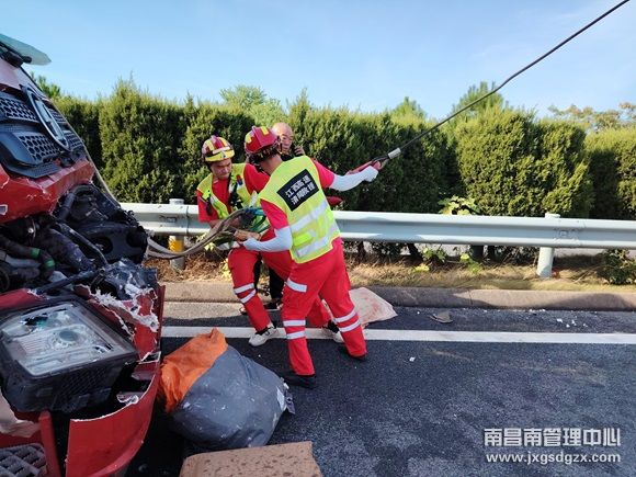 8月13日7时35分,在东昌高速樟树方向K36公桩处发生两货车追尾事故,情况紧急。南昌南车辆救援大队罗湖中队迅速行动,第一时间奔赴事故现场。